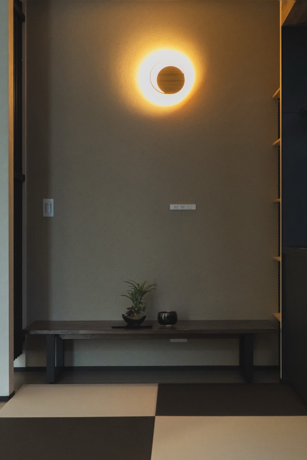 まるでお月様のような照明が「お月見」をしているような和モダン空間です。
